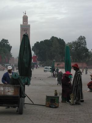 昼間のフナ広場。あちこちに猿まわしや蛇使いが。気づかれないように遠目で...