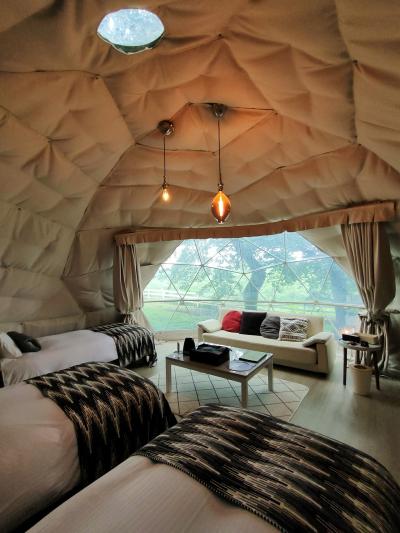 ディナーは予約制。外食の場合は、車で須坂に抜ける峠の、食事処のある温泉施設がおすすめのようです。私たちは1泊目は須坂まで降りてファミレスに行き、2泊目はこちらでおいしいディナーをいただきました。