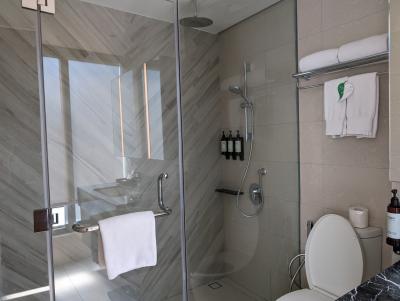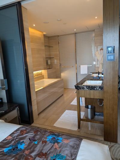 アメニティはロキシタンで、バスローブは肌触りがよく、バルコニーからの夜景も解放感が良かったです。朝食も当日フロントで追加し、アワビ粥や点心も洋食も美味しかったです。