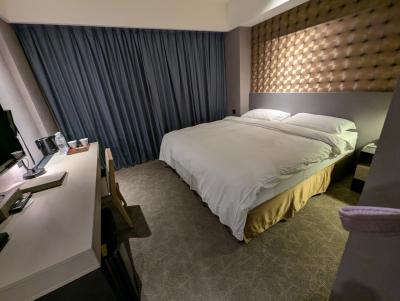 窓のない部屋を予約したので、寝るだけなら問題なかったです。雑居ビルのエレベーターを上がってすぐフロントで、ホステルのような雰囲気。でも部屋はきれいでした。インスタントコーヒーやキャラメルラテ、ウーロン茶を必要な分だけフロント脇から取り、飲料水も廊下にウォーターサーバーがあってセルフで汲みに行くスタイルでした。フロントのスタッフの対応も笑顔がなく、ホステルのような雰囲気でした。ロケーションは台北駅から雨でもあまり濡れずに行けるのですごく助かりました。