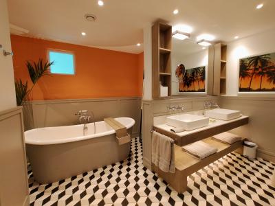 バスルームは前の客の髪の毛がかなり落ちていて清掃は×でしたが、バスタブでゆっくりできました。大きい建物なのに玄関がジブラルタルと逆側に一か所だけなので、徒歩だと少し遠く感じました。- 旅行時期
