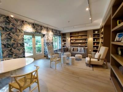 施設は下の階にキッチンやバーがあり、綺麗な庭にもテーブルがあります。