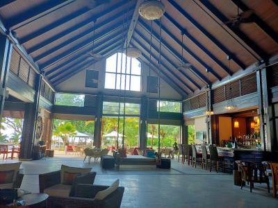 エデン島のインド料理レストランマハラジャの前からの無料送迎ボートでCERF島へ行きます。ボートの時間は空港からのチェックインに合わせてなので、帰りは指定の時間に有料で送ってもらいました。記念日だと伝えていたところ景色のいい部屋にしてもらいました。ケーキは夕食時に有料で予約しました。部屋にWIFIはなく、ロビンソンスタイルで滞在を楽しんでくださいと言われました。レセプションエリアにはあります。夕食はセットメニューで2種類から選ぶようなスタイルでした。静かで都会の喧騒を忘れられる滞在になりました。