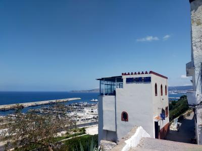 メディナのカスバから門をくぐって海側に出ると、タンジェの港やジブラルタル海峡が一望できます。