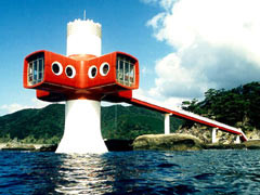 螺旋階段を降りて行き、自分達が海中を泳ぎ回る魚達に見られる、普段と逆バージョンが楽しめます。エサ(魚)に喰らい着く野性の魚達が間近で見学できます。