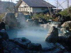 白く濁った温泉・露天風呂はオススメです。でも、立ち上がると滑っていく人が見えます(笑)