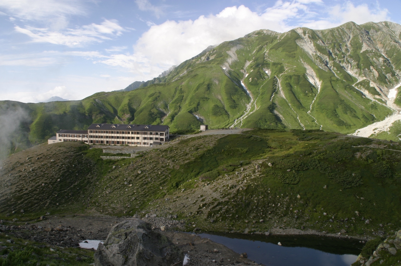 室堂BTからみくりが池を経て40分くらい山道を歩くと着く山小屋的なホテル。個室もあり、食事もおいしく宿泊料もバスターミナル近くのホテルに比べてリーズナブルです。1点難があるとすれば、悪天候の場合は移動がかなり辛いかも…。