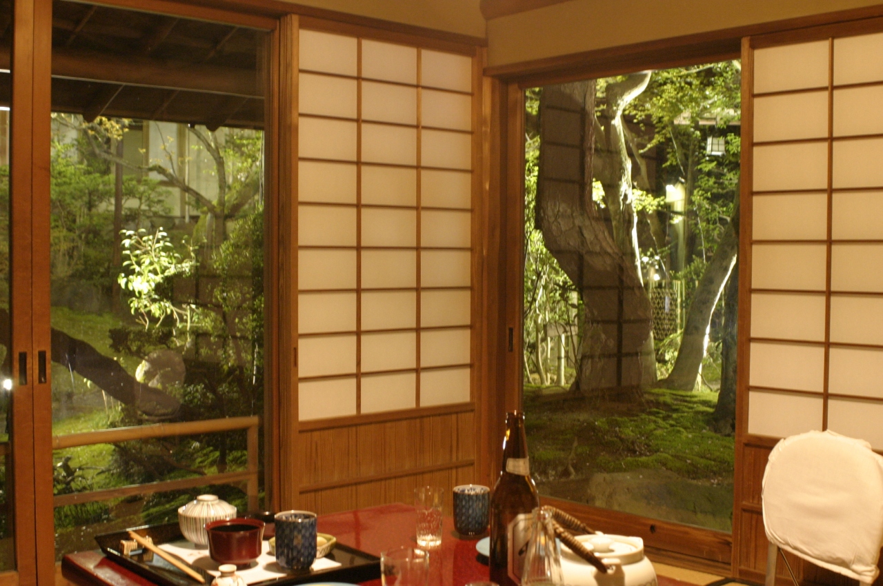 京都にいる友人の紹介で、桜が咲く頃に東山を借景とした庭園にある離れで京懐石の夕食をとりました。泊まってはいませんが、そこに泊まることもできるようです。庭の眺めは抜群ですが、食事は代金を考えるとごく普通でした。