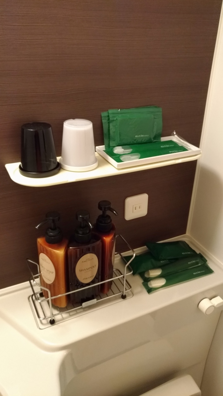 アメニティは一通り揃っています(シャンプー,コンディショナー,ボディソープ,ボディクリーム,石鹸,歯ブラシ,歯磨き粉〔LION製。味◎〕,綿棒,コットン,ネイルファイル,シャワーキャップ,コーム)。