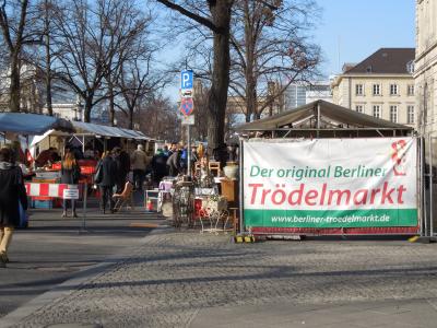 S-Bahn Tiergarten駅から西にある道路脇で行われている蚤の市です。