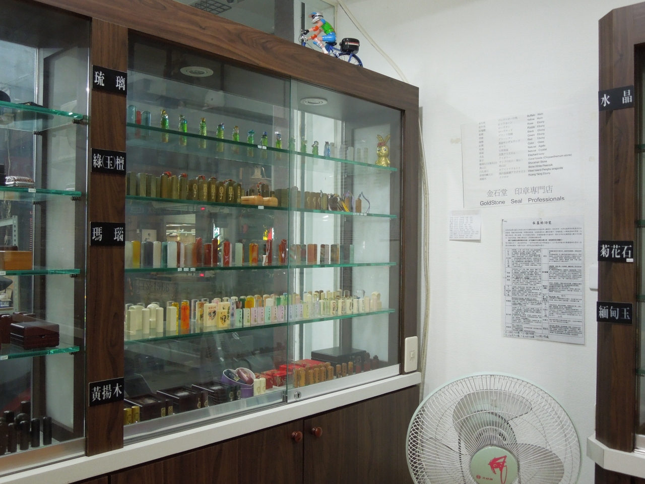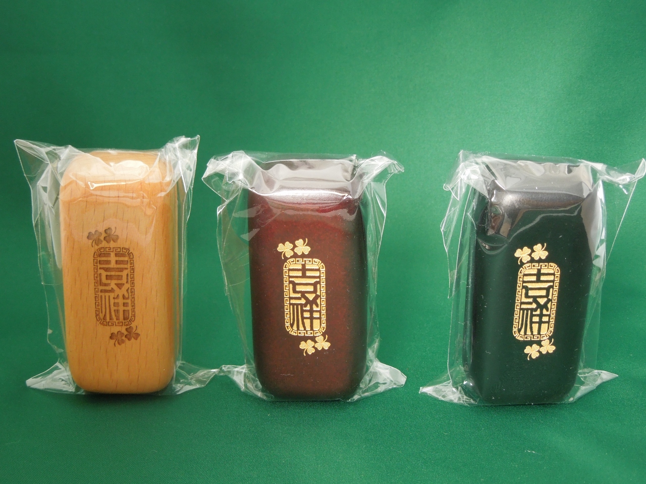 実は、菊花石の角印を作りたかったのですが、石に掘るには時間が掛かる&日本への発送はしたことがないとのことで、白水牛と黒檀の印鑑と、木でできていて、表面に「吉称」と入っている印鑑ケースを購入しました。