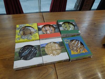 焼き菓子、チョコレート、烏龍茶などいろいろ扱ってます。