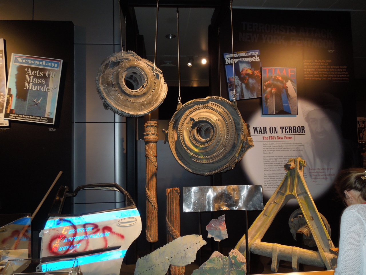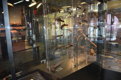 警察官が使用するものの歴代の物(拳銃、マシンガン、手錠、バイク、警棒や制服、バッチ、帽子、装備品など)が展示され、911関連は、専用の場所で展示されています。