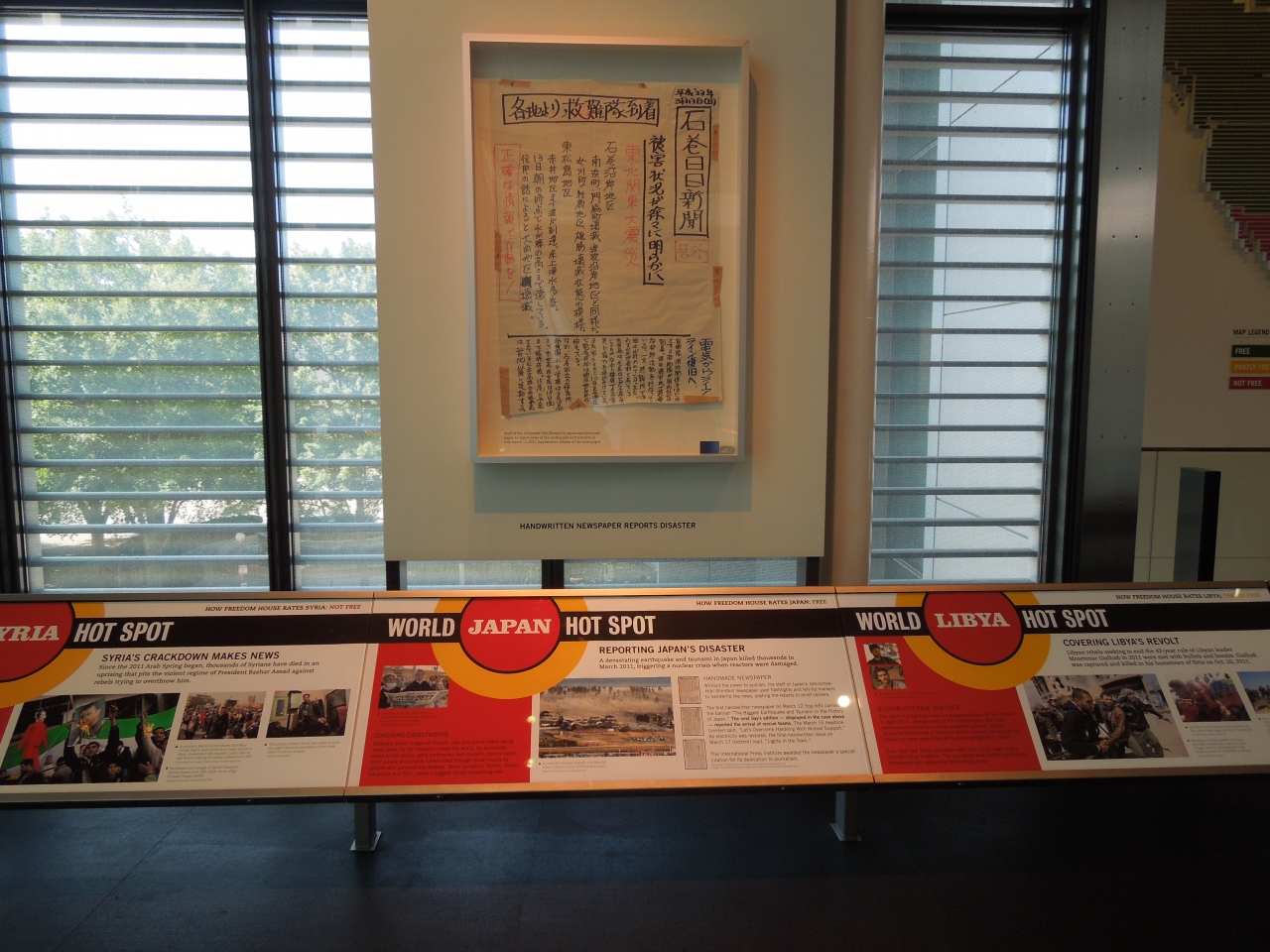 東日本大震災で大きな被害を受けた石巻、そこで平成23年3月13日に発行された手書きの石巻日日新聞号外が歴史の証人として展示されていました。