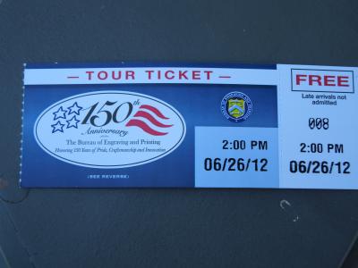 見学は無料です。冬の時期は、チケット不要です。春から秋にかけては当日の朝8時から配布されるチケットを入手する必要があります。詳しくは、BEPのホームページで確認できます。