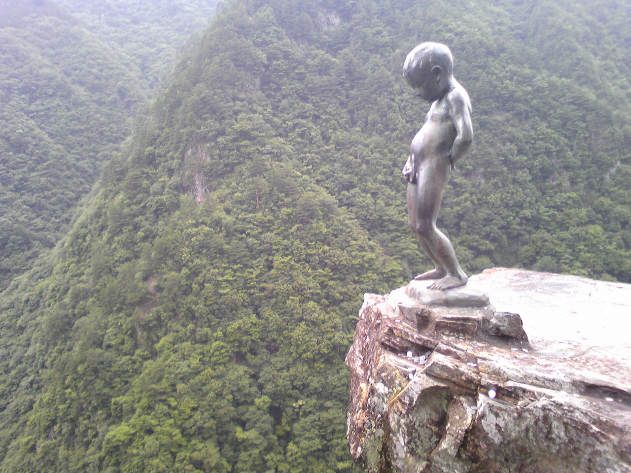 写真を撮るには小便小僧を囲む柵に乗るのですが、