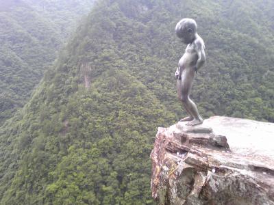ほぼ頂上地点から深く切り込んだ渓谷を覗き込むと・・