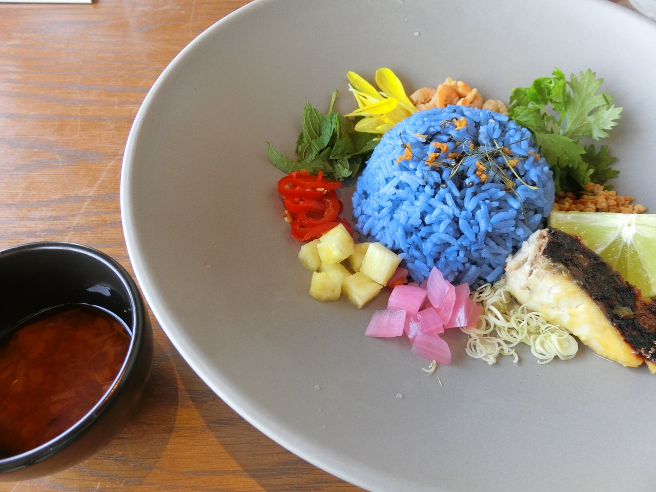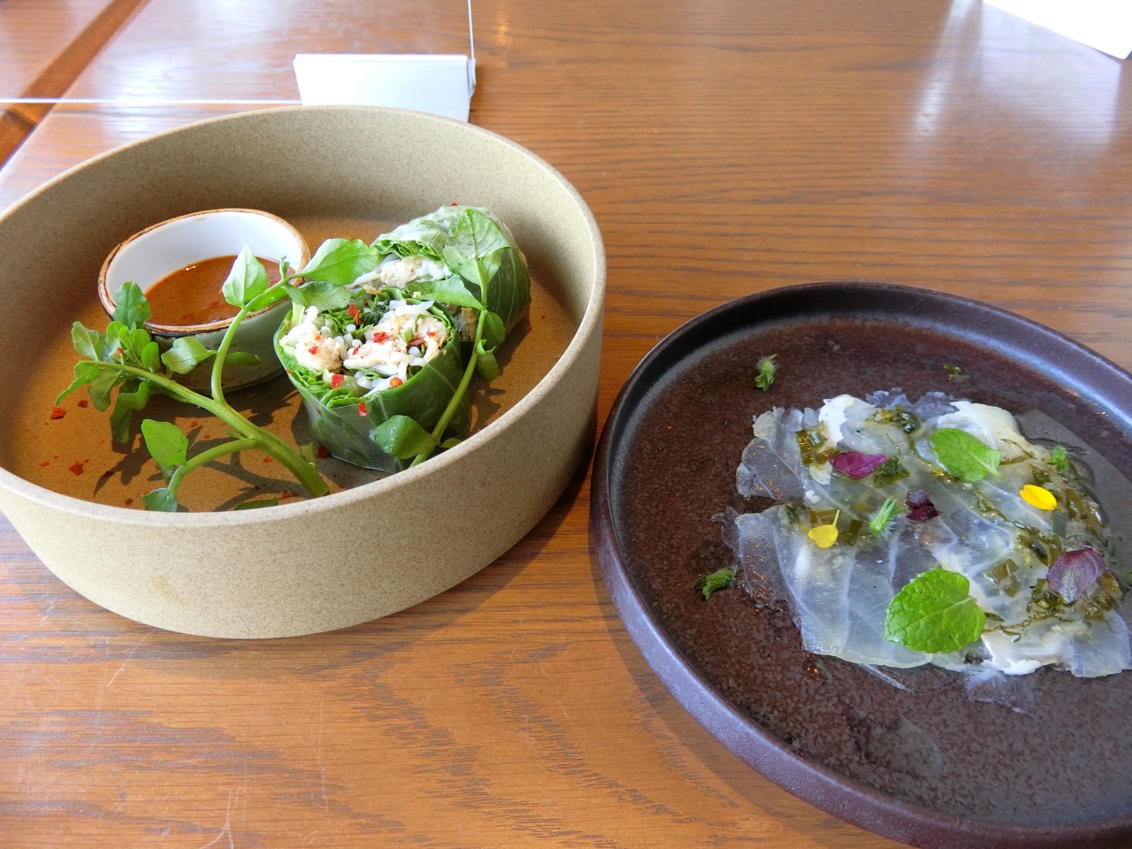 オーストラリア発のタイ料理レストランでガーデンプレイスタワーにあります。土曜のランチに利用。タイ料理をベースにゆずやふきのとうなど和食材を取り入れたり、ハーブを洋風にアレンジしていて新鮮。窓からは東京タワーやレインボーブリッジを望む景色、スタッフの接客も良く、堪能しました。ネット予約は1コースのみ(選択肢あり)で広い店内が満席でした。