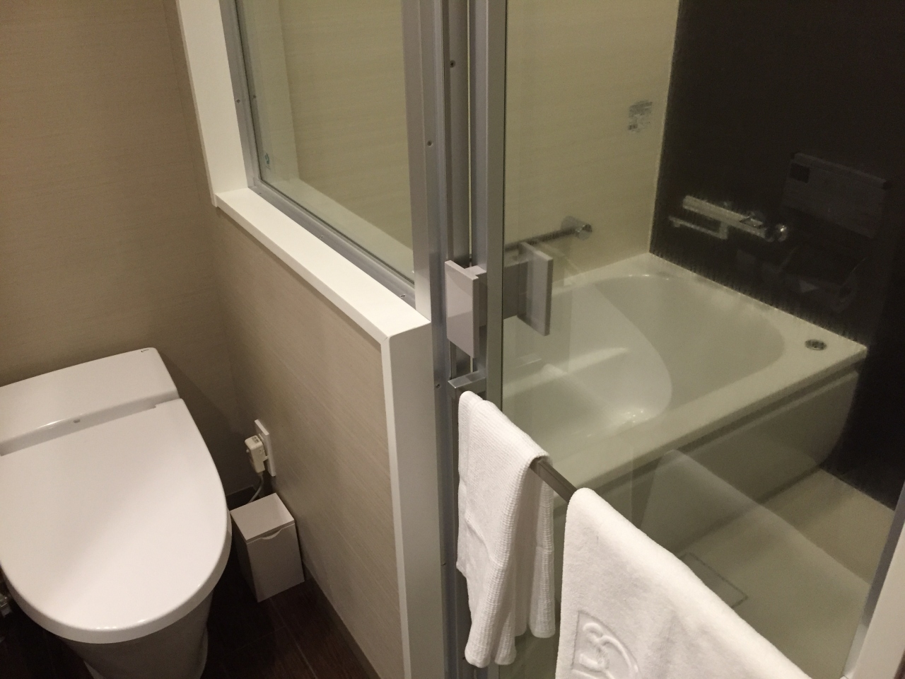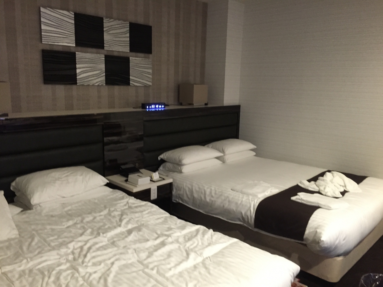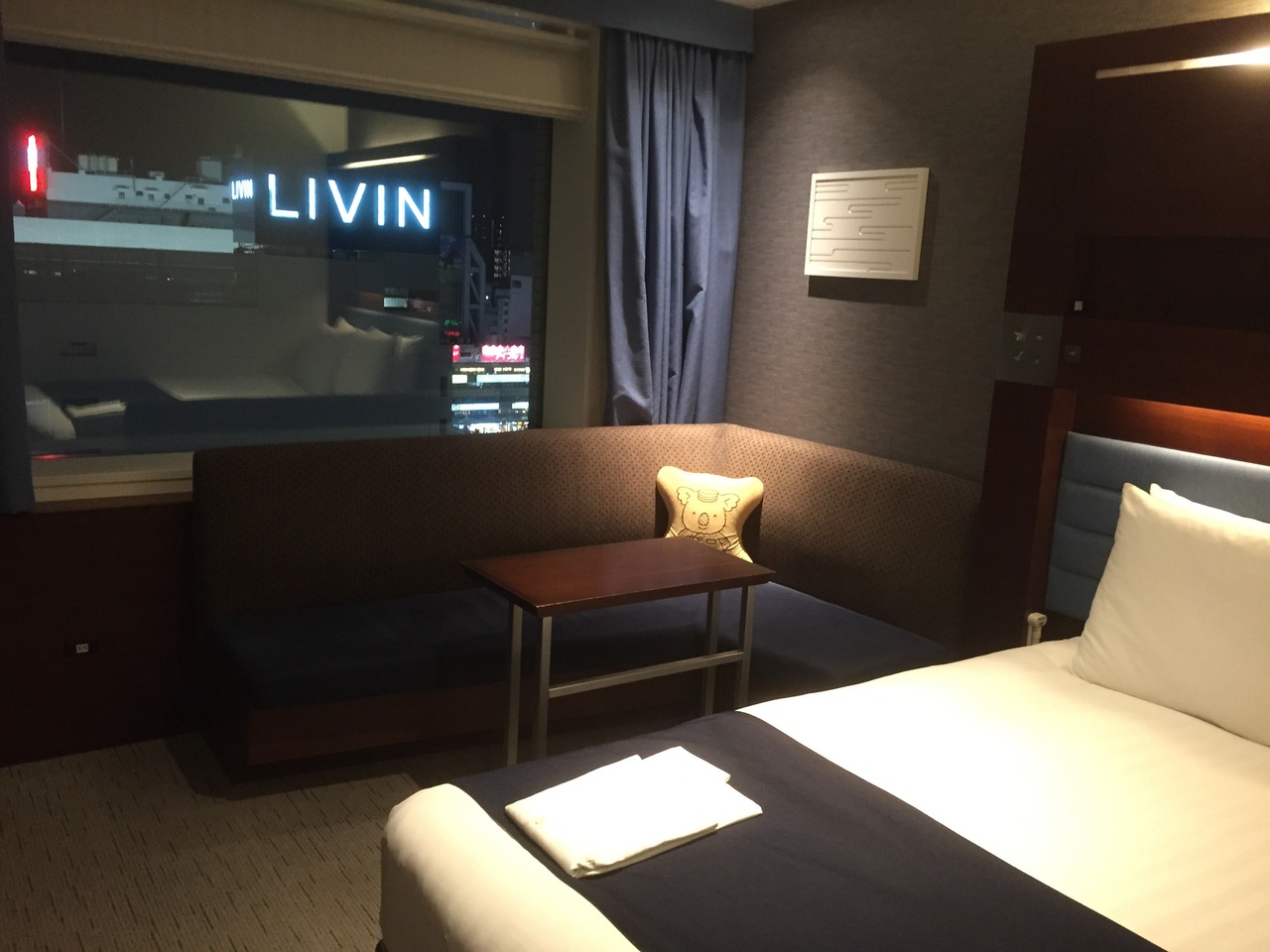 他にもベッドは2人でもゆったりサイズで、テレビも大きく、窓からは新幹線などが見え、文句のつけようがない客室でした。