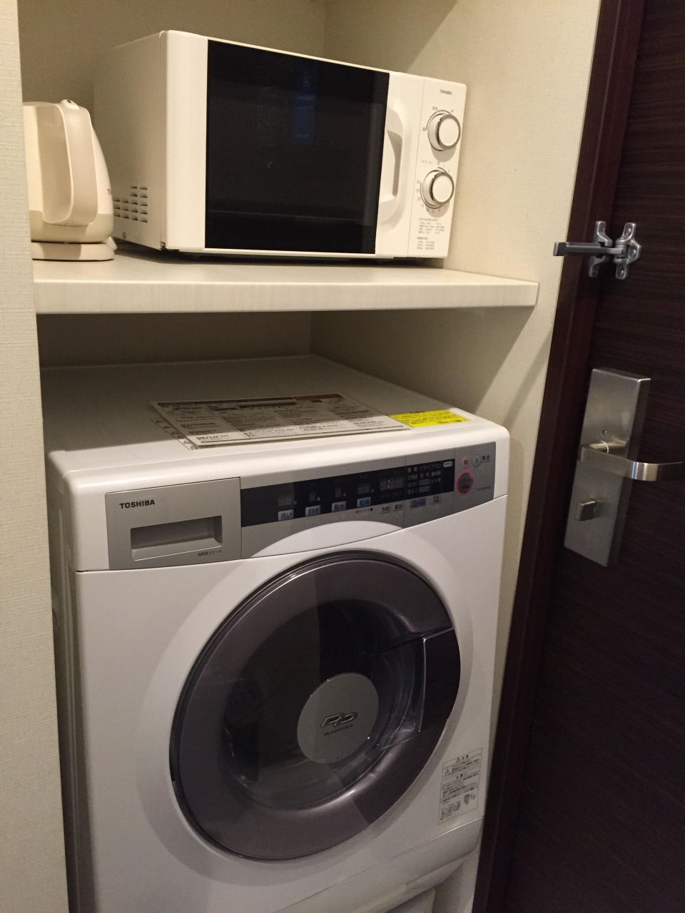 コインランドリー付きのホテルは多いですが、ここは自室にあるのでわざわざ出し入れしに行く必要がなく、とても便利です。