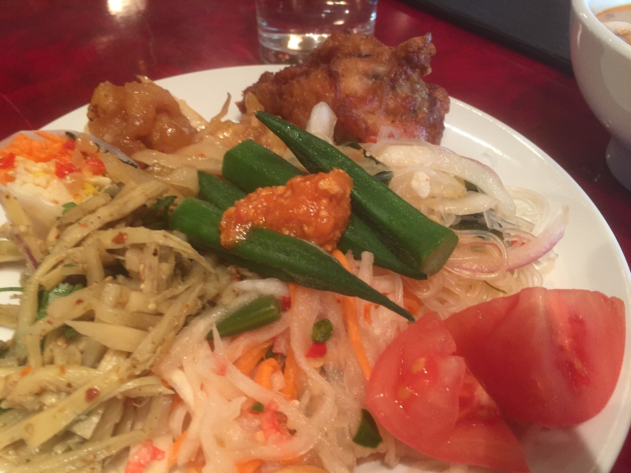 野菜、カレー、米麺にデザートとたくさん食べさせてもらいました。