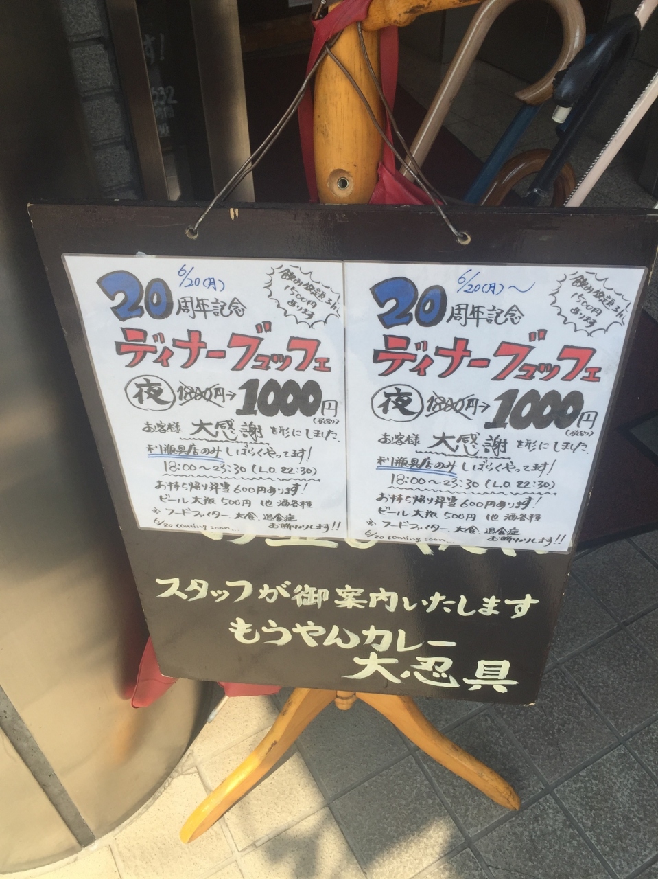 もうやんカレー。新宿駅から少し歩きますが、人気のカレービュッフェのお店と知り平日のランチに伺ってみました。