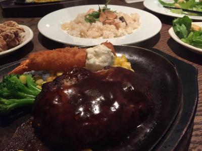 ハンバーグに、クーポンでプレゼントのエビフライもつけました。