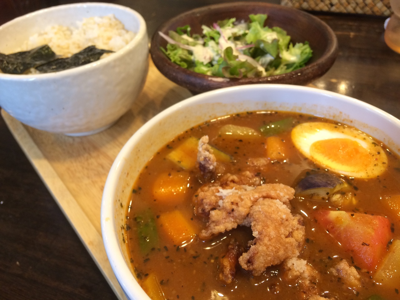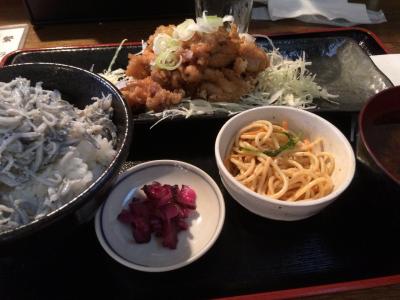 唐揚げ定食にしらす乗せ放題ごはん。美味しかったですが店内の衛生面と、お店を出た後の服の匂いに残念感。