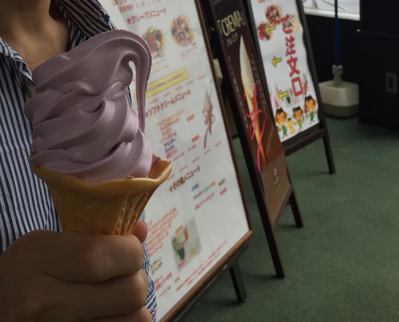 行った日は台風接近で縮小しており、中腹のお店はほとんど営業していなかったのですが、ラベンダーソフトは食べることが出来ました。