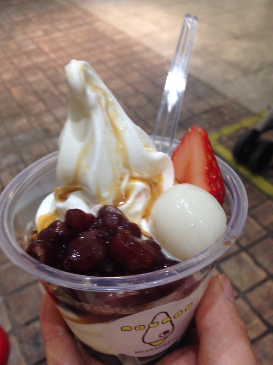 イートインのスペースはとても狭いので、お店の外側にちょっとだけあるベンチで食べるしかないのですが、食べ歩きには足が疲れていたので座って食べました。