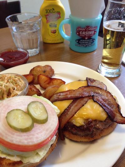 ボリュームたっぷりのホームメイドベーコンチーズバーガーをオーダー。