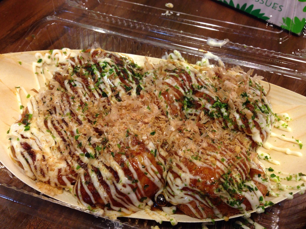 ソースのたこ焼きをお店の外にあるテーブルで食べました。