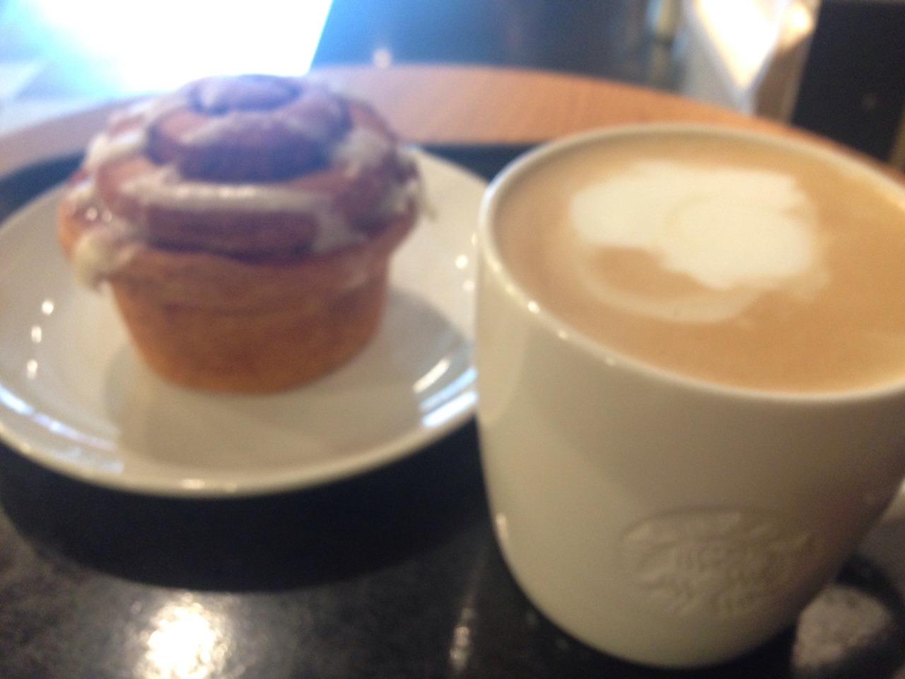 いつも混んでいるので、外から見て混んでいるなーと思うとスルーしてしまったのですが、この日はシナモンロールが食べたかったので、多少座りにくい席でもいいやと入店。