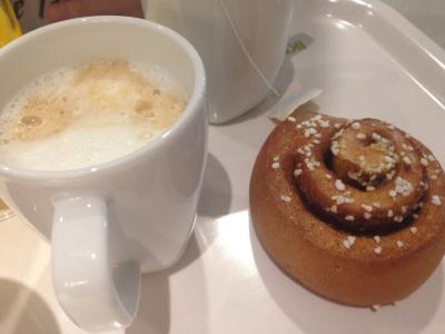 シナモンロールと一緒にたべるカプチーノがおいしかったです。- 旅行時期