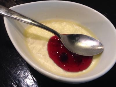 事前に食券を預かってくれるので、席についてからはスムーズです。女性用には、麺少なめの代わりにデザートでパンナコッタがつきます。