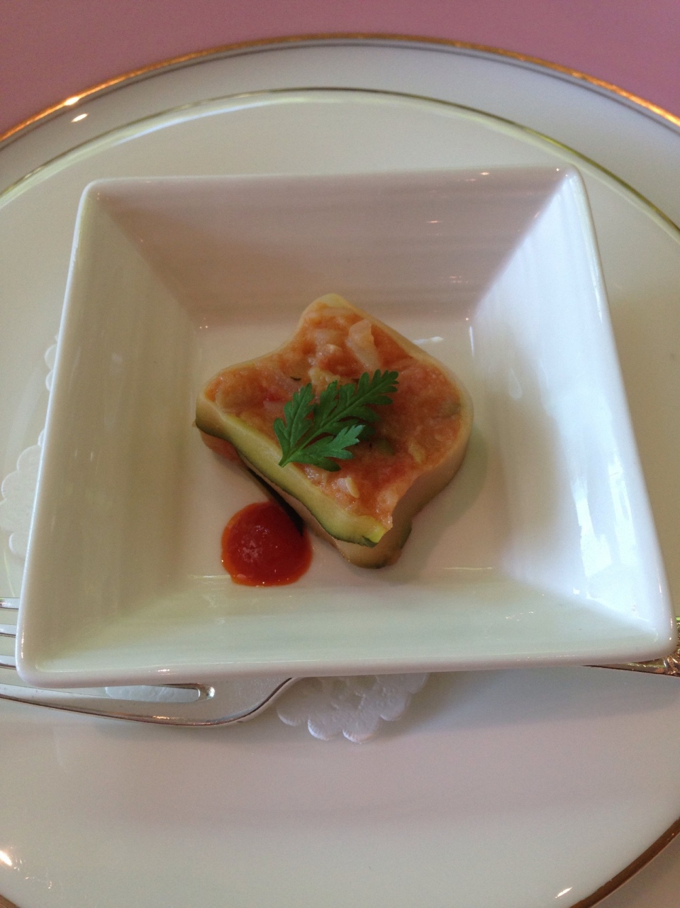 シャンパンサービスに、アミューズブーシュ、前菜2品、メインは魚か肉、そしてデザートワゴンに食後のドリンク。