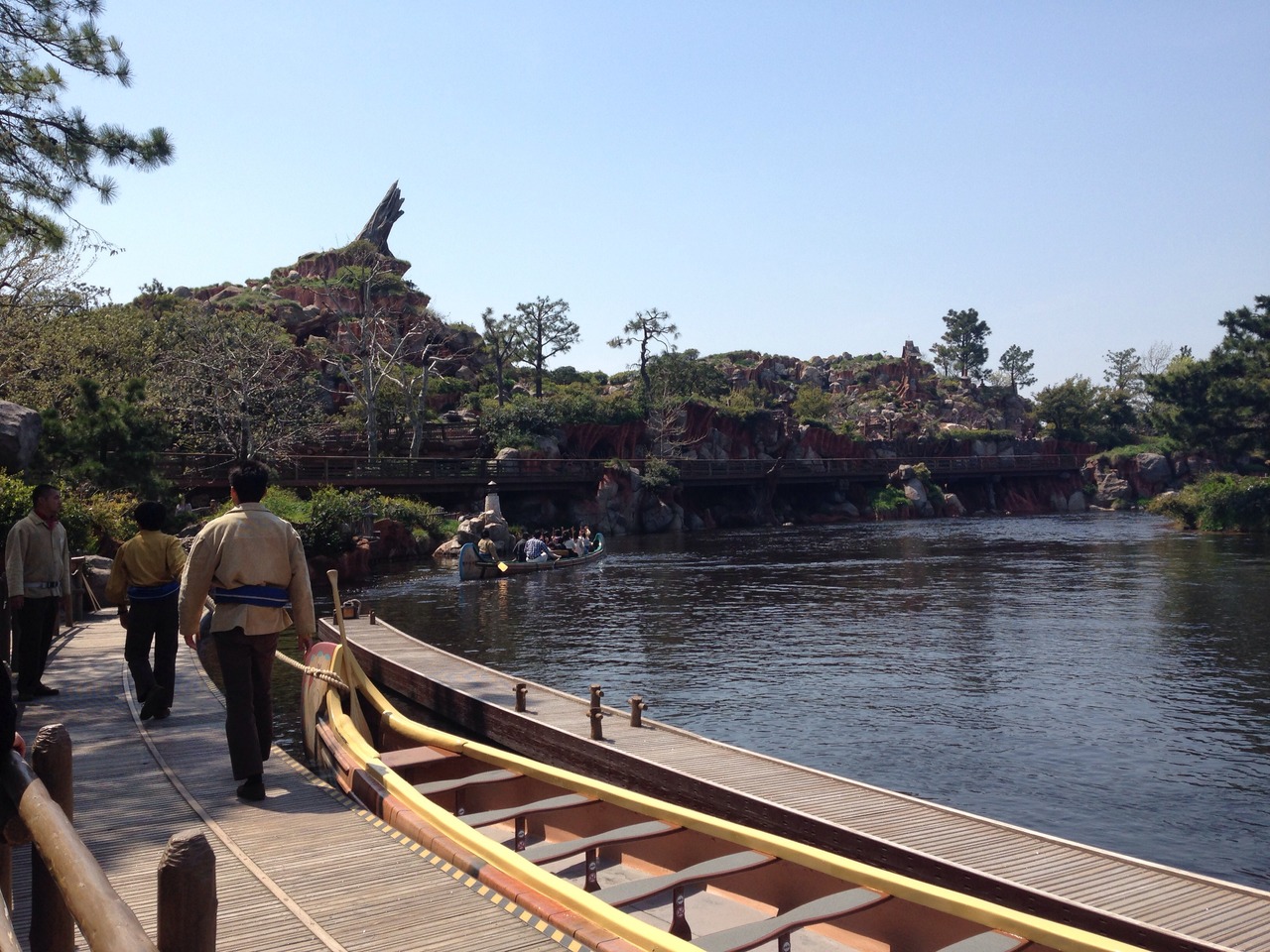 クリッターカントリーにあるアトラクション。キャストの声かけに合わせて皆でカヌーを漕ぎます。