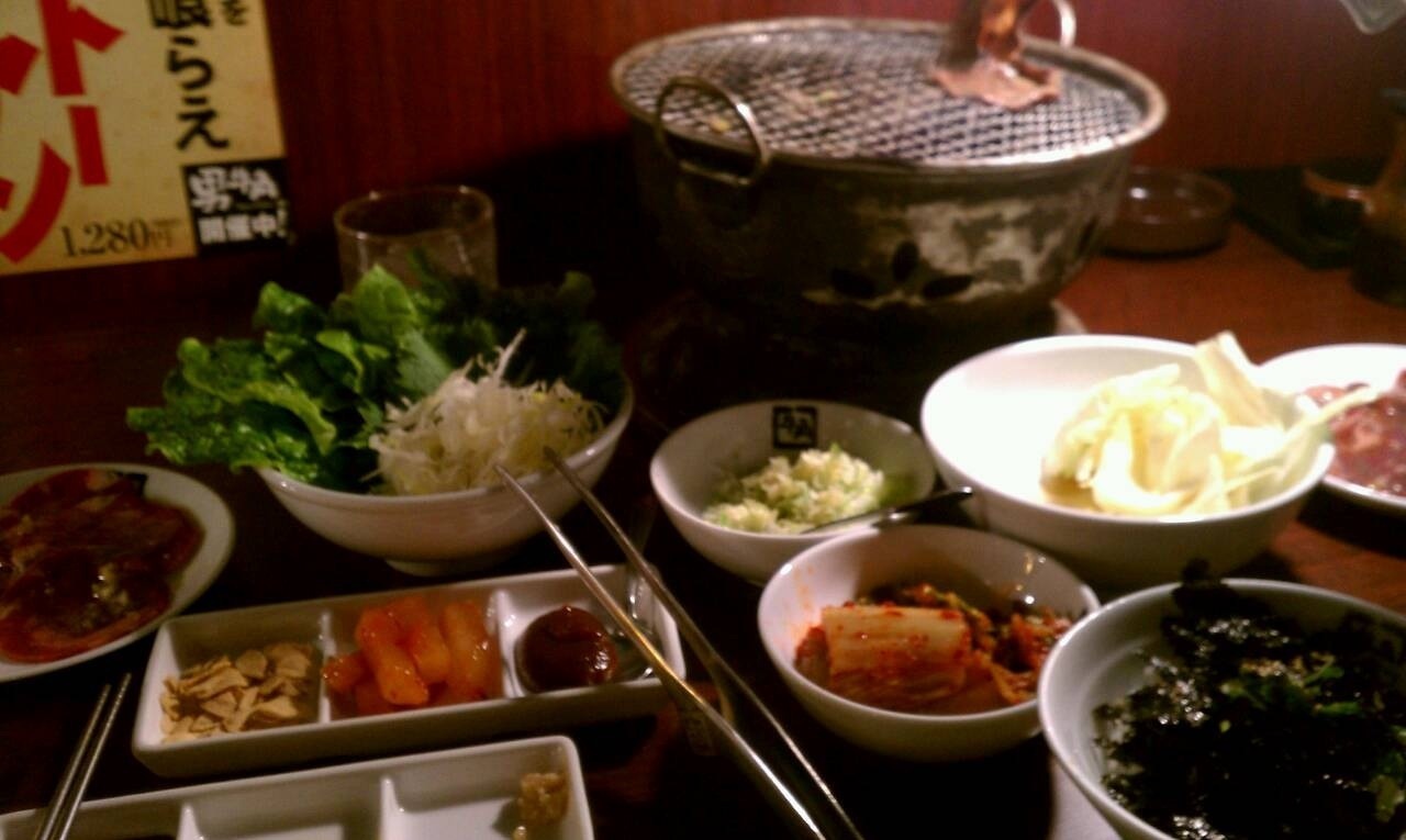 ベーシックなお肉と野菜のセットは千円、追加で味付きのお肉とラムタン、キムチと〆のつけ麺を食べました。