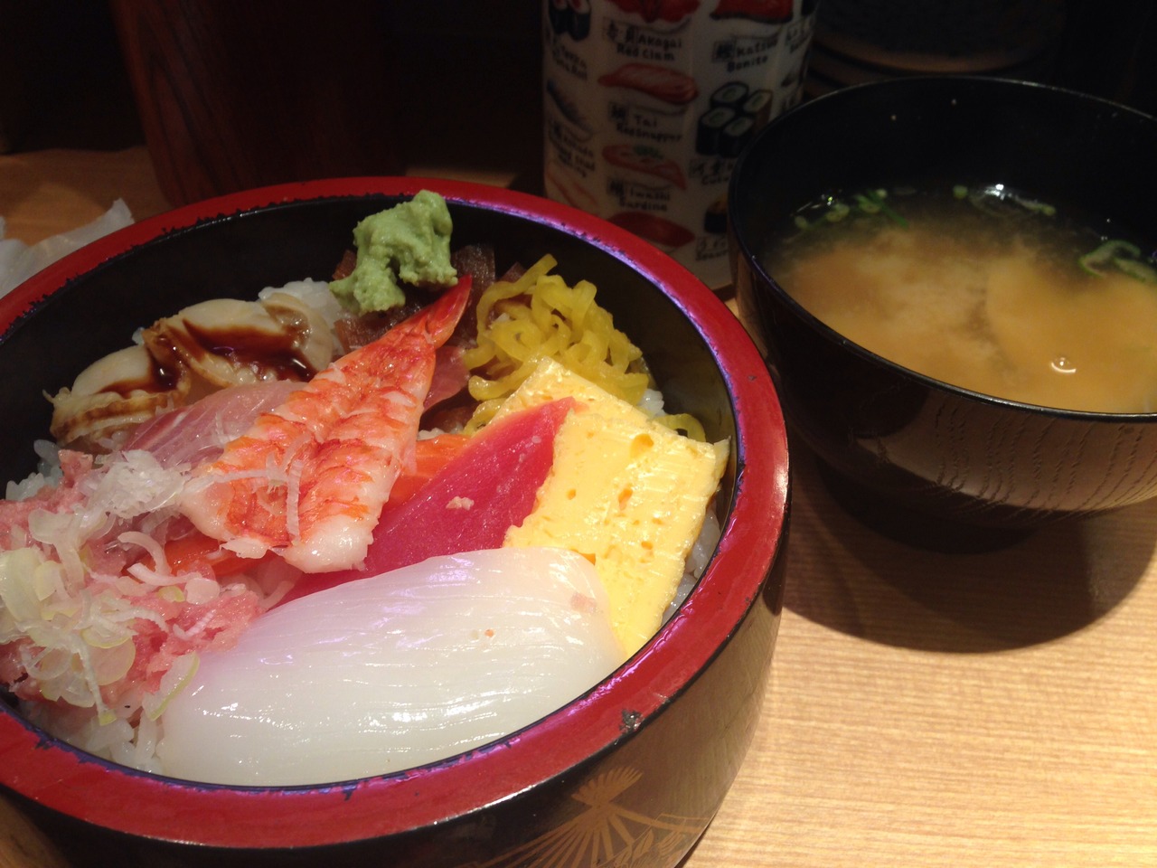 回転寿司がメインですが、ランチはお味噌汁つきのどんぶりもあるのでそちらを注文しました。