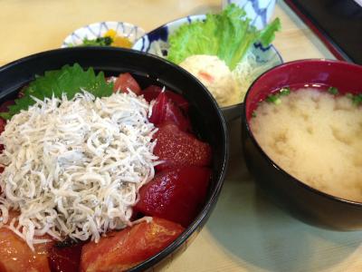 駿河丼を注文。フライと刺身のつく魚河岸定食もおいしそうでした。