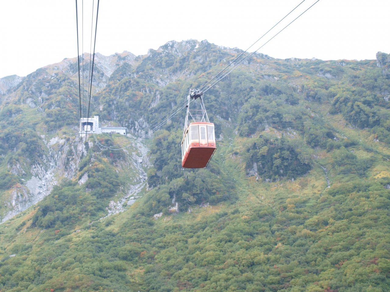 乗り物を乗り継ぎ乗り継ぎ、大観峰までは途中に支柱のないロープウェイでのぼります。