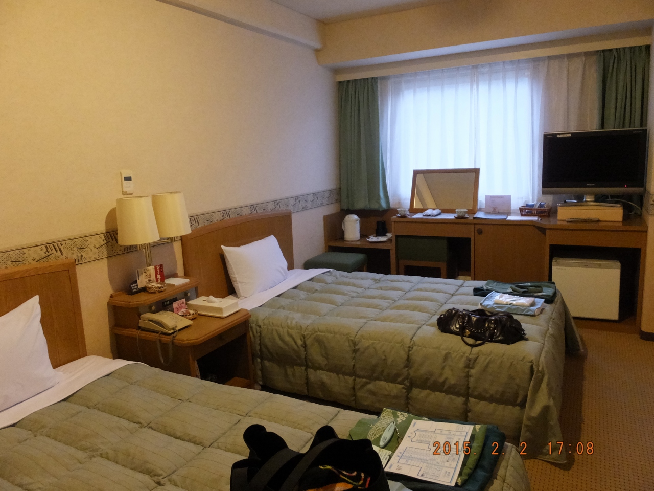 ツアーの最終日、ツアー参加者6名の荷物置き場になりましたが、スーツケースを3個広げられる広さでした。