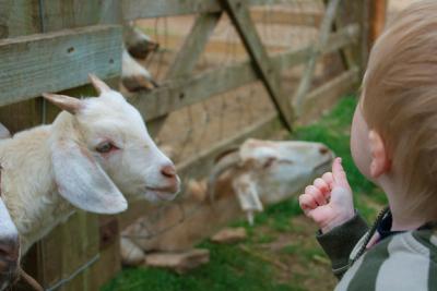 えさをおねだりする動物たちと、興味津々に近寄ろうとする子供たち。外国人...