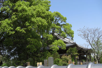 緑の中に黒い長屋門があり、そこから中に入ってみると、石組みの立派な日本庭園がありました。気がつくとそこはお寺でした。外側から正面に移ると、渋い貫禄のある茅葺屋根の山門がありました。門の前石碑には「天台宗別格本山吉祥寺」とあります。茅葺屋根の上は苔むして良い味をだしています。江戸時代前期の建築、吉祥寺は慈覚大師の開山と伝えられる古刹です。市指定文化財。