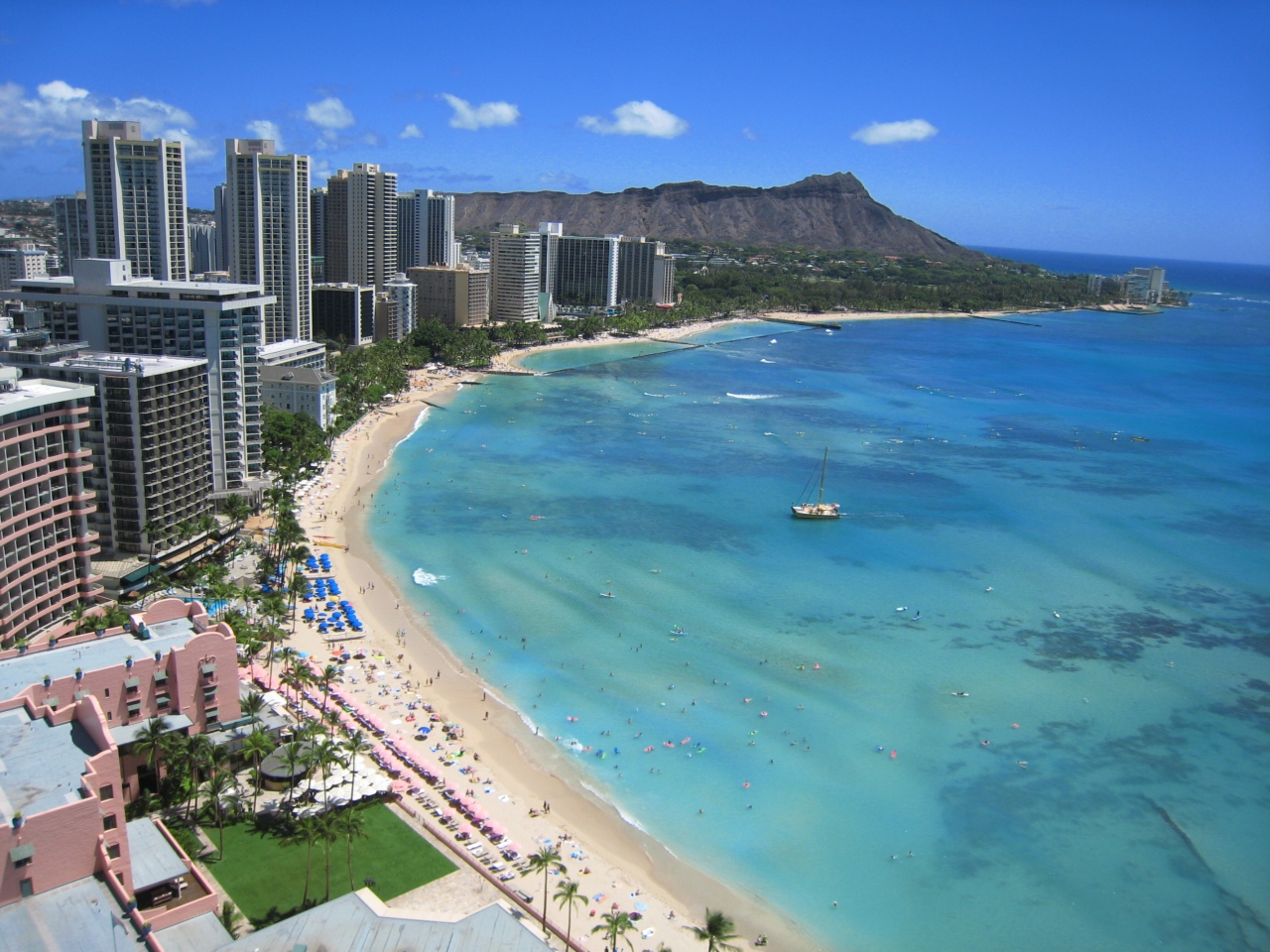 部屋に関しては30階のダイヤモンドヘッドが見える部屋で、ラナイへ出るとワイキキビーチが弧を描いてダイヤモンドヘッドに繋がる風景と、青い海が眼下に広がっていました。写真はラナイからのものです。
