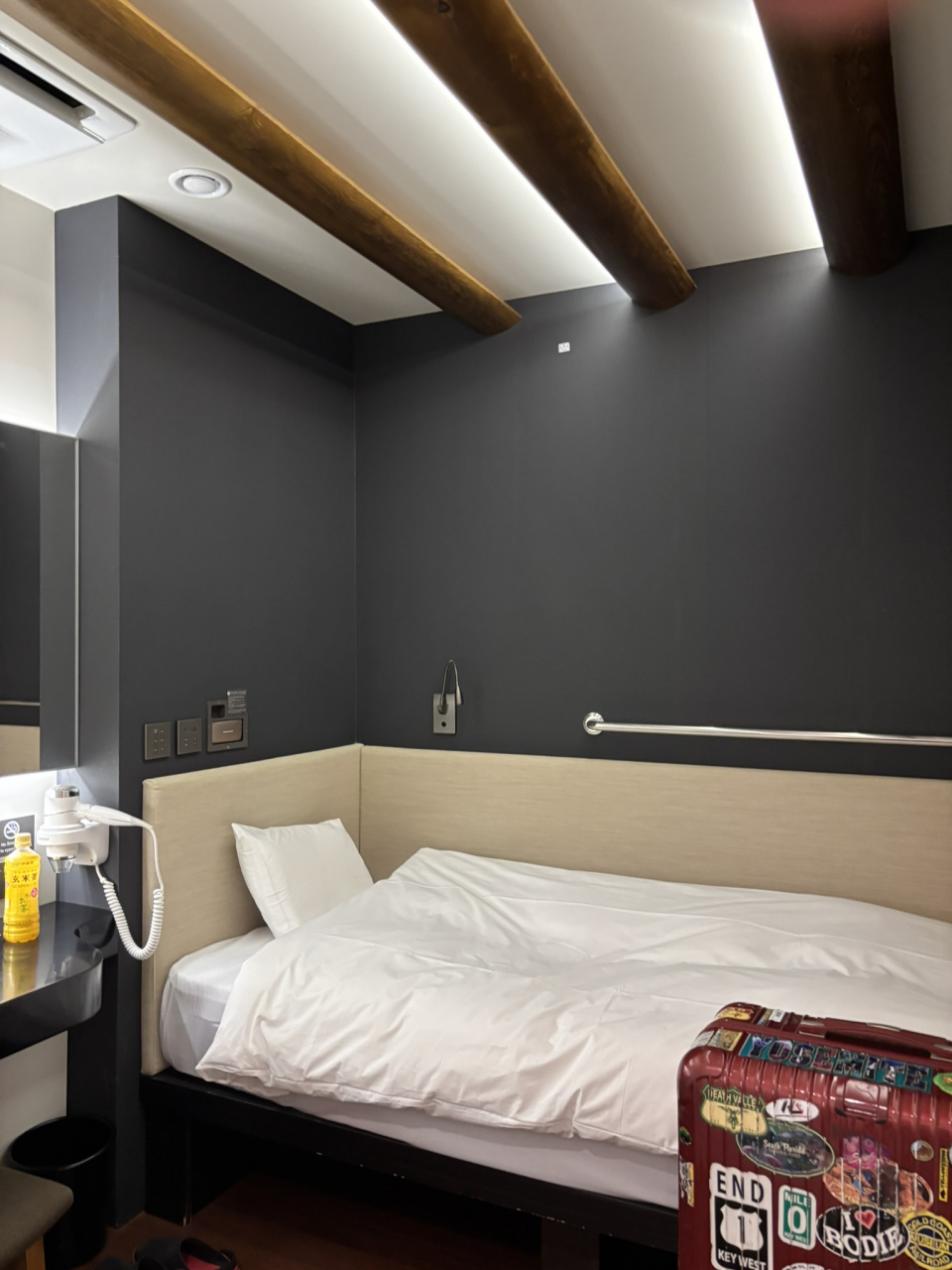 お部屋は日本のカプセルホテルとは違い天井が高いので圧迫感はありませんでした。