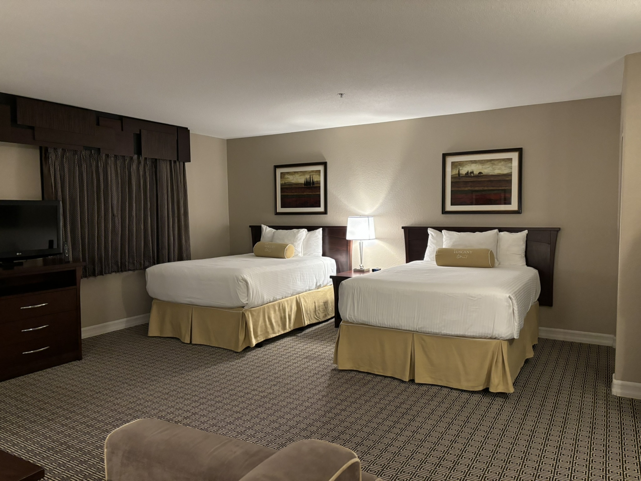 お部屋は二つのクイーンベッド(3人家族ですのでエキストラベッドをお願いしました)が入っていても広々です。
