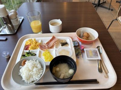 朝食は珍しいセルフのおにぎりとおかずでこちらは別なホテルで変化がありよかったです。