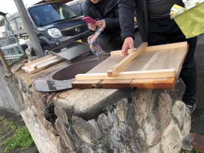 お芋やジャガイモ、卵など持ってきてかまどに入れてワクワク感で温泉に行きました。