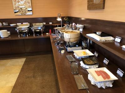 サービスの朝食も小鉢にラップがしてあり好きなだけのビュッフェでした。